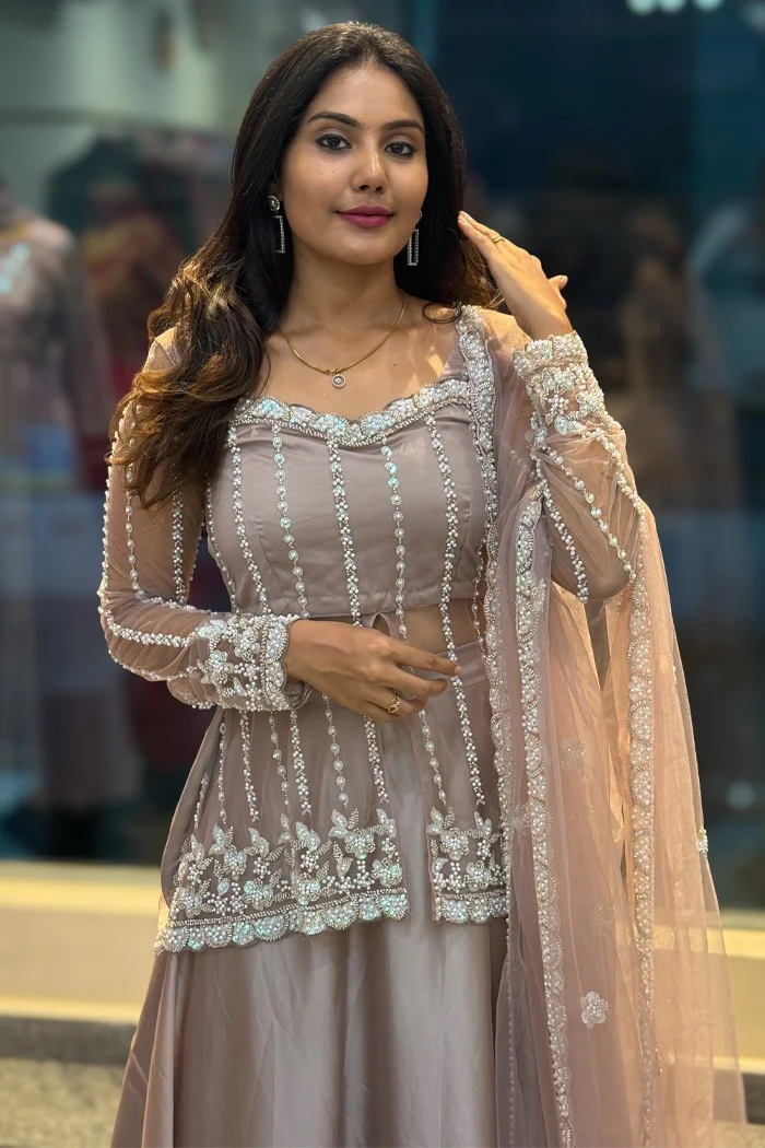 Top Crafted On Silk Satin With Complete, Intricate Beads Work.