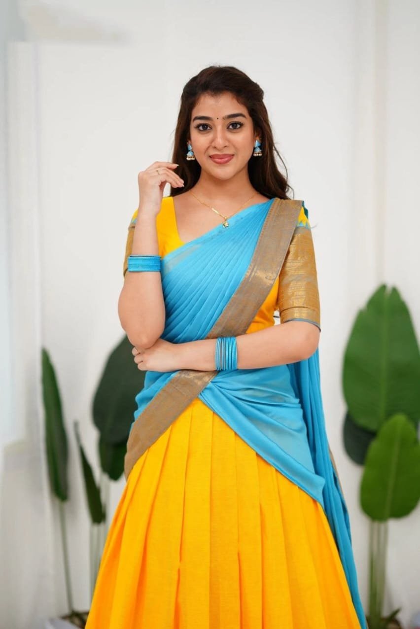 Premium Traditional Half Saree Yellow and Blue - Flynker