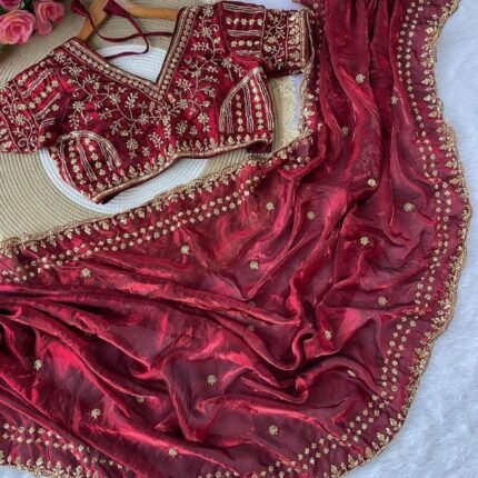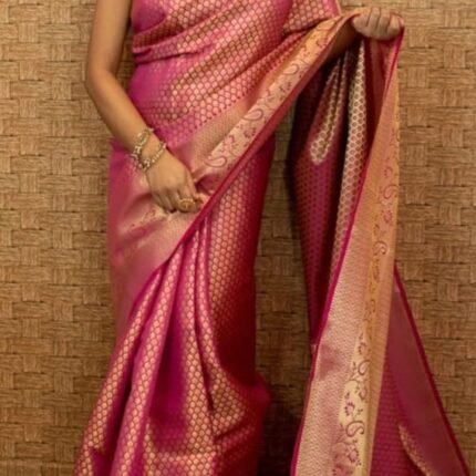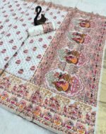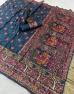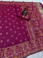 Pure and Soft Rajwadi Pashmina Silk Weaving Saree With Kashmiri Thread Wooven Pallu Having With Heavy Rajwadi and Zari Weaving Border With Running Butti Blouse
