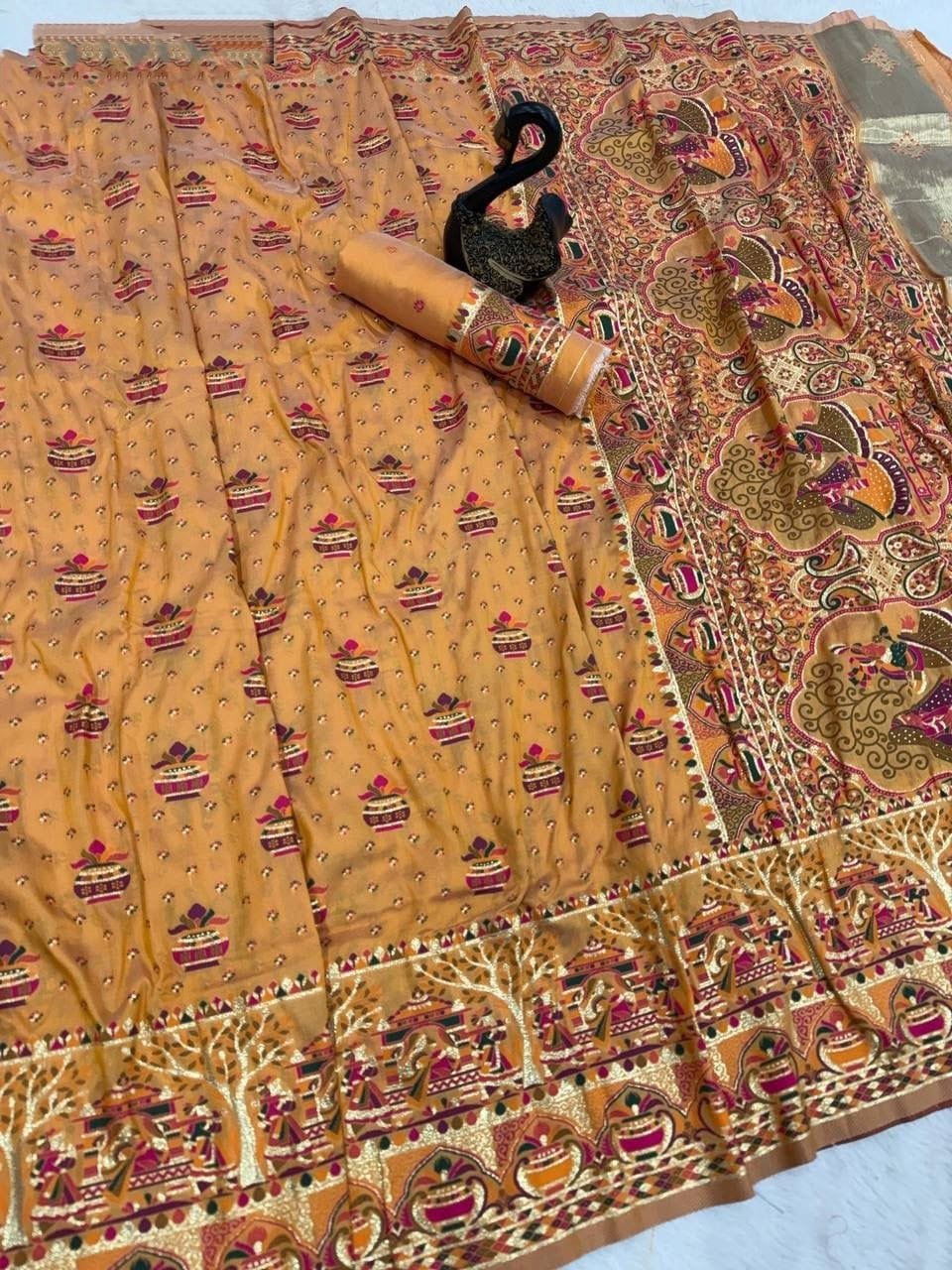 Pure and Soft Rajwadi Pashmina Silk Weaving Saree