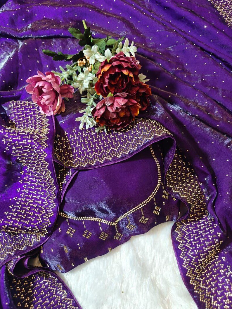 Blouse :- Space Silk Fabric Along With Designer Original Jarkan Work Border (Un Stitched).