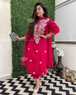 Look straight out of a dreamy movie set as you turn around and walk in this elegant flaired suit ! The perfect of traditional wear kurtis