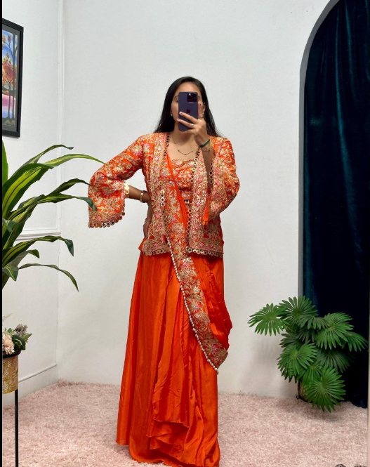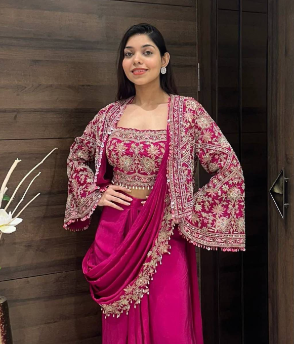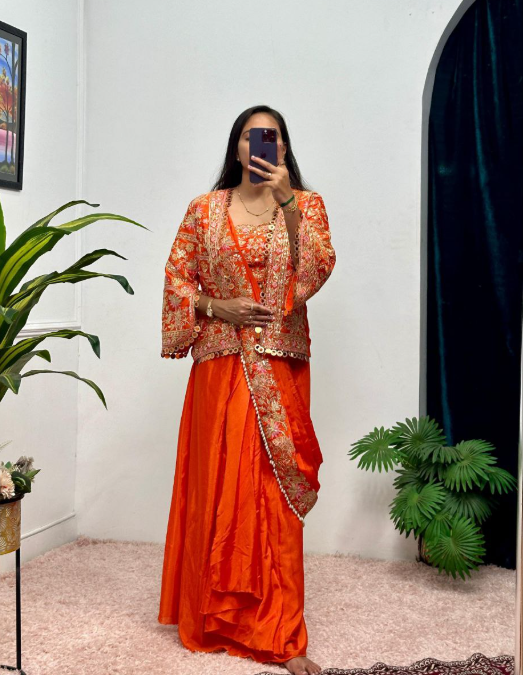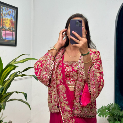 New Superhit Trending Ready To Wear Saree With Fully Embroidered Koti On Chinon Fabric With Stitch Blouse