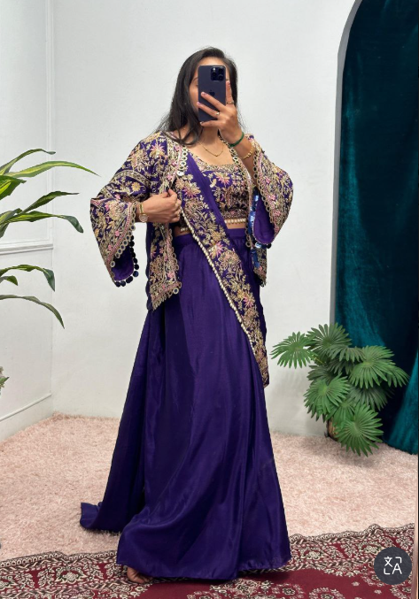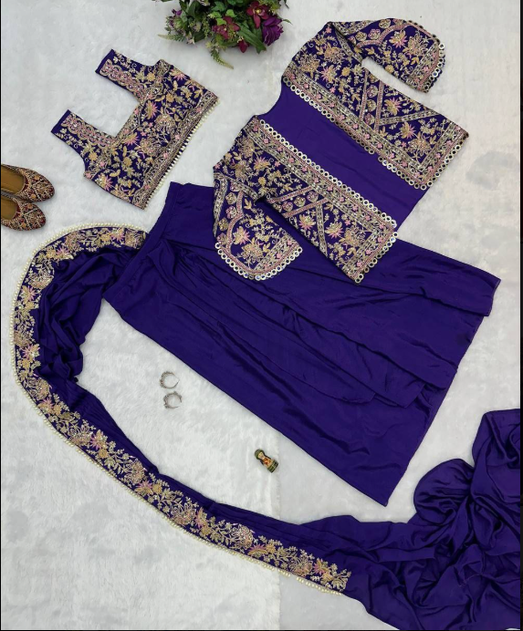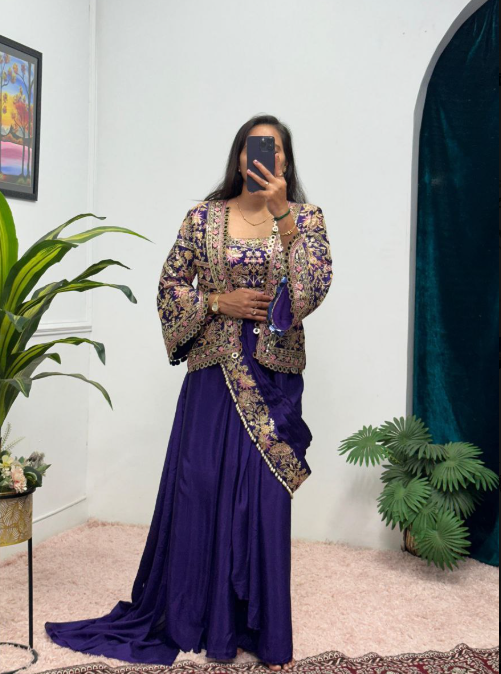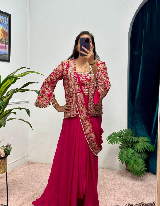 We Are Launching New Superhit Trending Ready To Wear Saree With Fully Embroidered Koti On Chinon Fabric With Stitch Blouse