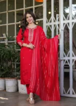 Home Hot Sale Red Viscose Chanderi Kurti Suit With Sequins Work