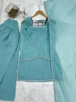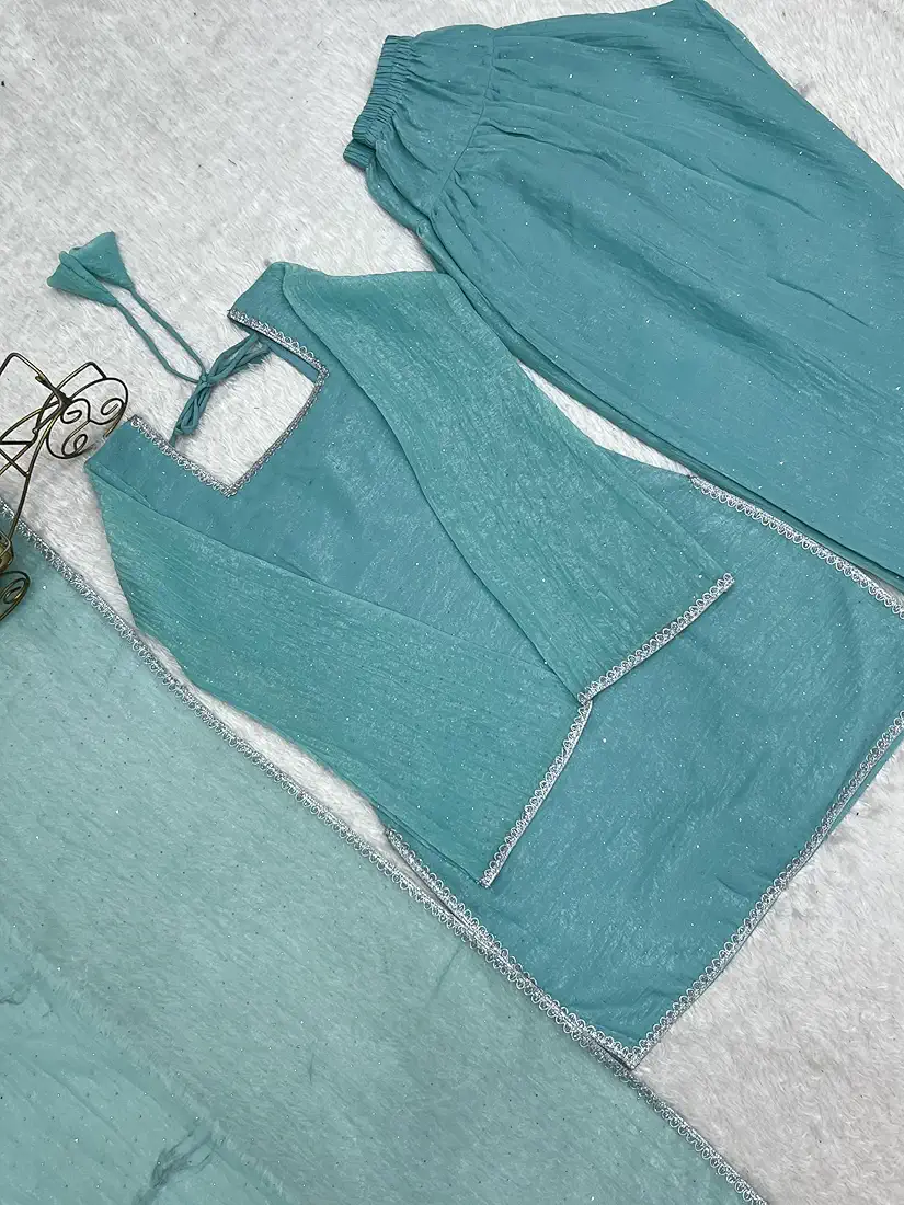 Home Hot Sale Sky Blue Cruchy Silk Farshi Salwar Suit Set With Siroski Work