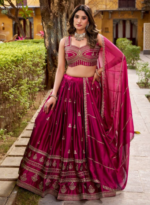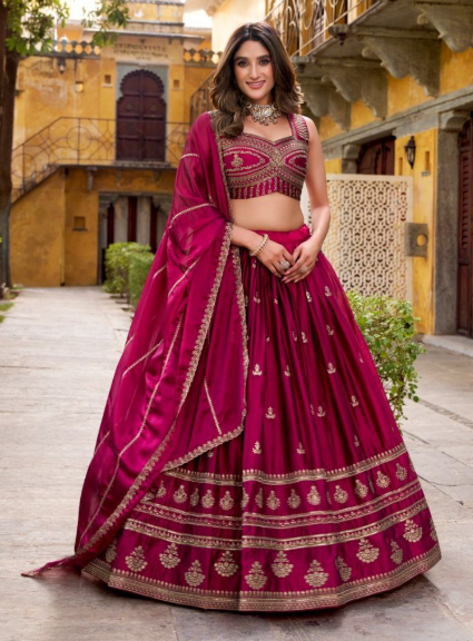 Premium Pure Chanderi Embroidered Lehenga With Silk Dupatta