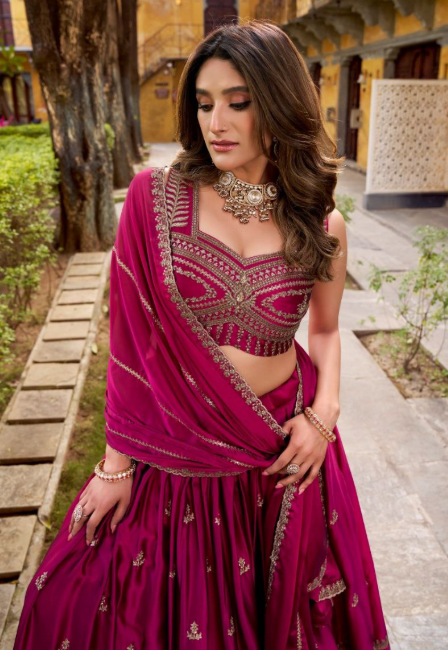 Stunning Pink Faux Blooming Embroidered Lehenga Choli
