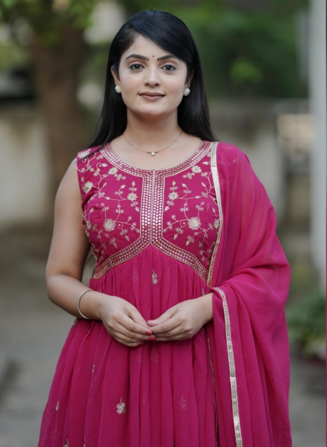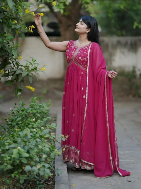 Work : All Over Embroidery With Aliya Cut Pattern And Designer Embroidery Border.