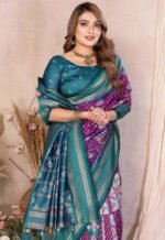 Teal Blue Soft Silk Ikkat Weaving Saree With Rich Border