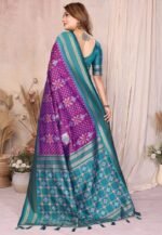Home Hot Sale Teal Blue Soft Silk Ikkat Weaving Saree With Rich Border
