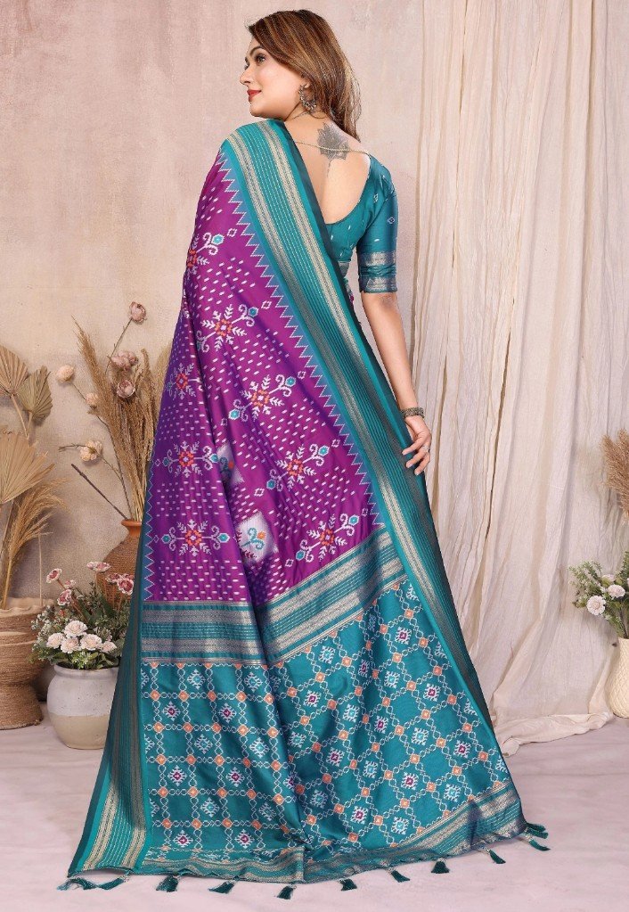 Soft Silk Ikkat Weaving Saree With Rich Zari Border.
