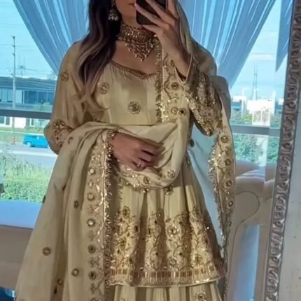 Fabrics & Work :- Gold Crush With Sequins & Zari Embroidered Work