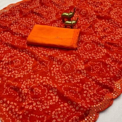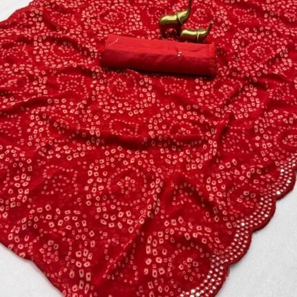 Latest Soft & Beautiful Georgette Saree With All Over Bandhani Print