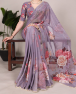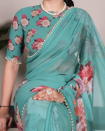 Saree Fabric :- Georgette Weightless Floral Printed Saree With Pearl Lace Border.