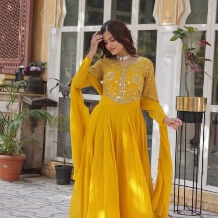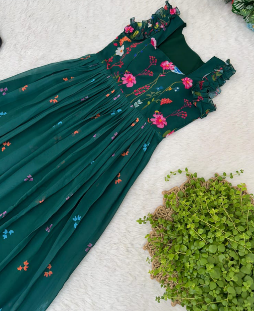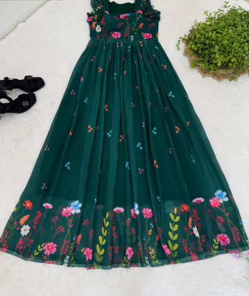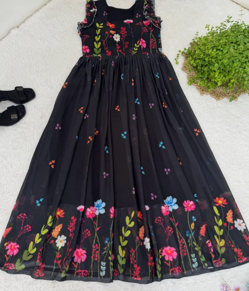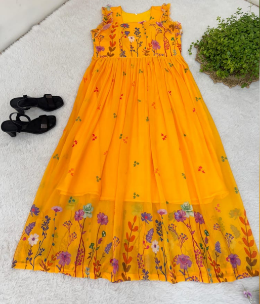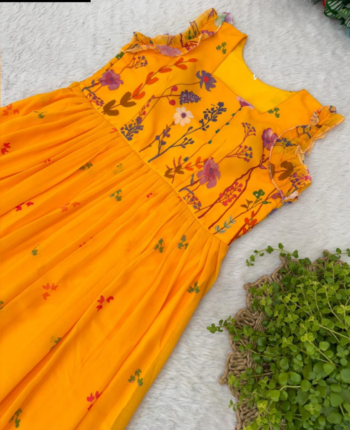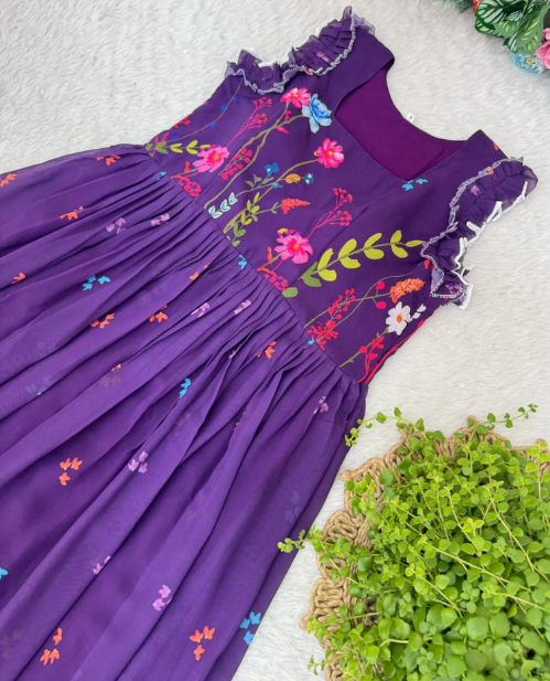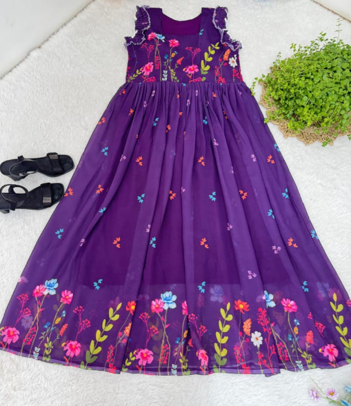 Heavy Georgette With Digital Print / Crepe Lining And Short Sleeves With Elastic Puff Pattern.