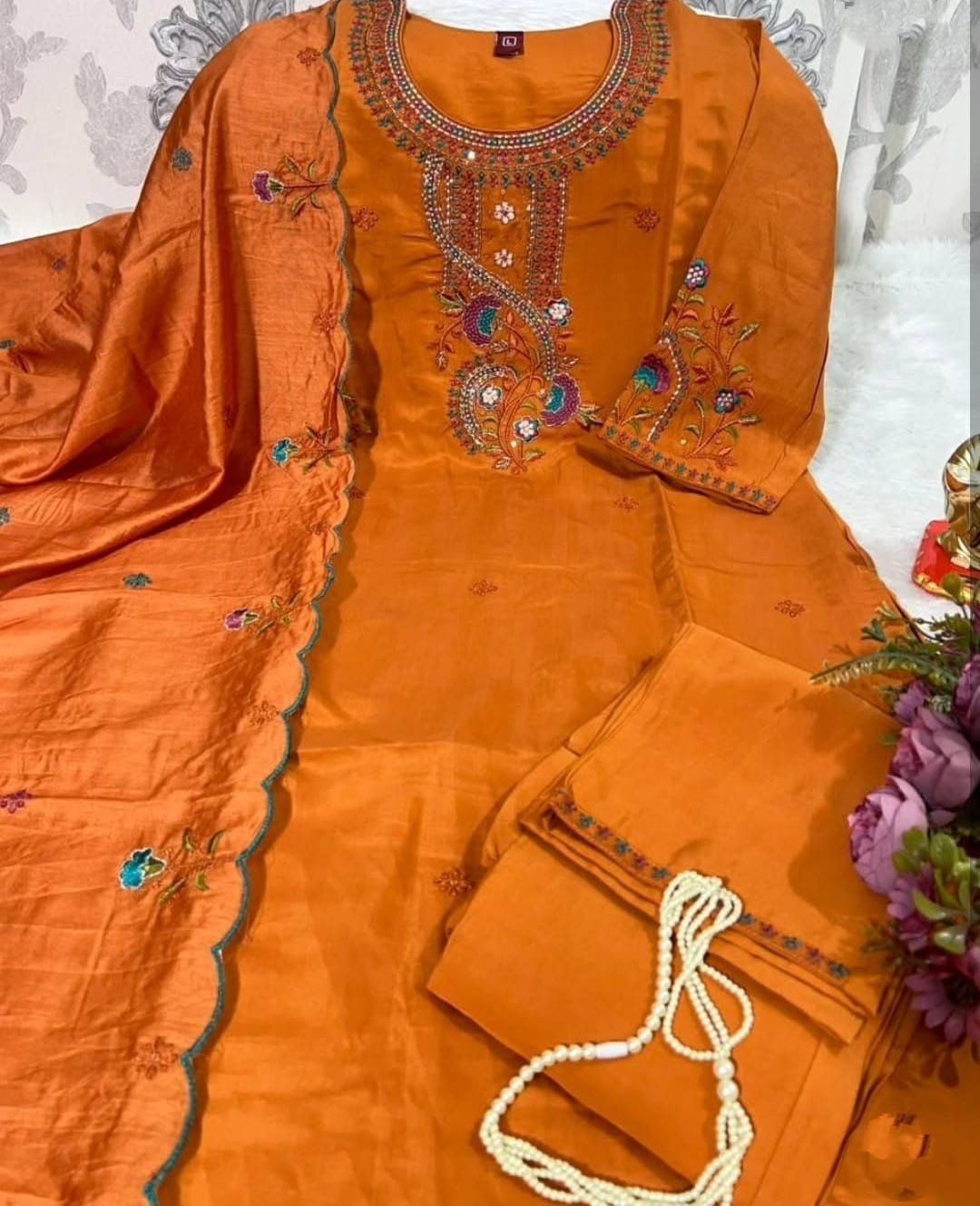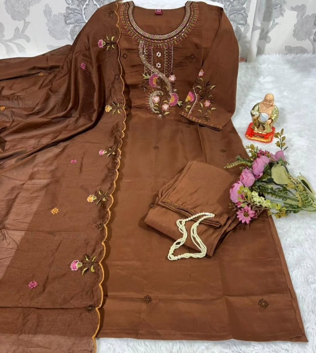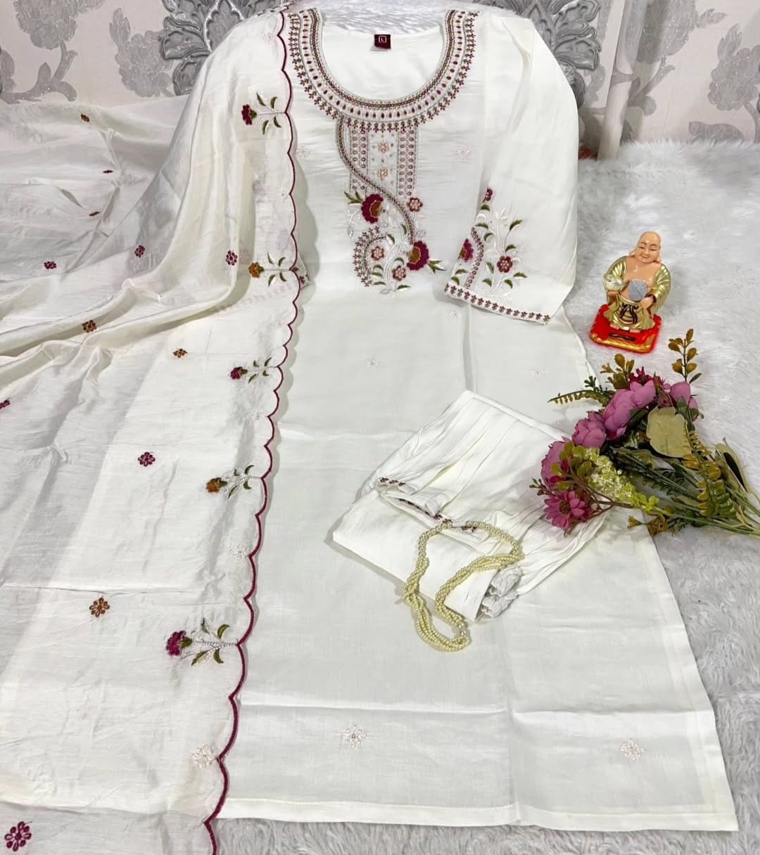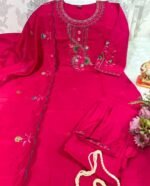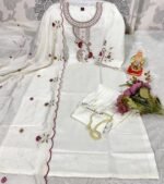 Viscose Silk Floral Embroidered Straight Kurta with Pant & Dupatta