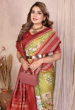 Soft Silk Ikkat Weaving Saree With Rich Zari Border.