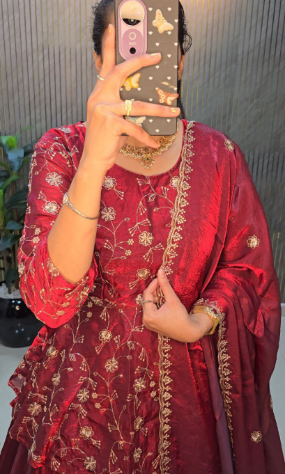 Fabric : Premium Space Silk With Maggam Sequins Work.