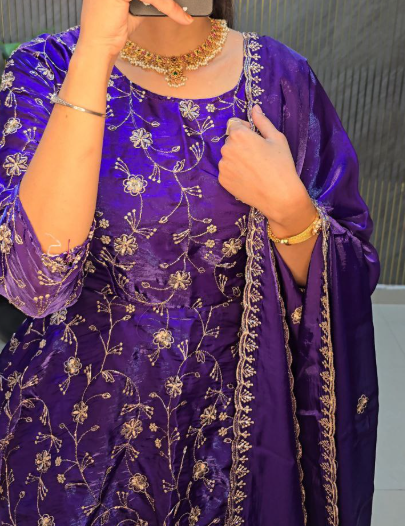 Fabric : Premium Space Silk With Zari & Sequins Cut Work.