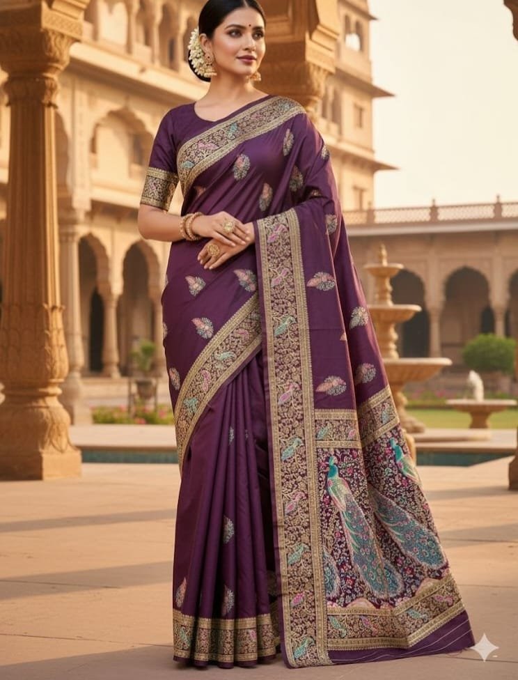 • afebb917-5df1-4394-bf29-de7475d0da5c Trendy Soft and Pure Banarasi Silk Saree 3D Weaving Mina Design ₹1,899.00 Original price was: ₹1,899.00.₹1,369.00Current price is: ₹1,369.00.