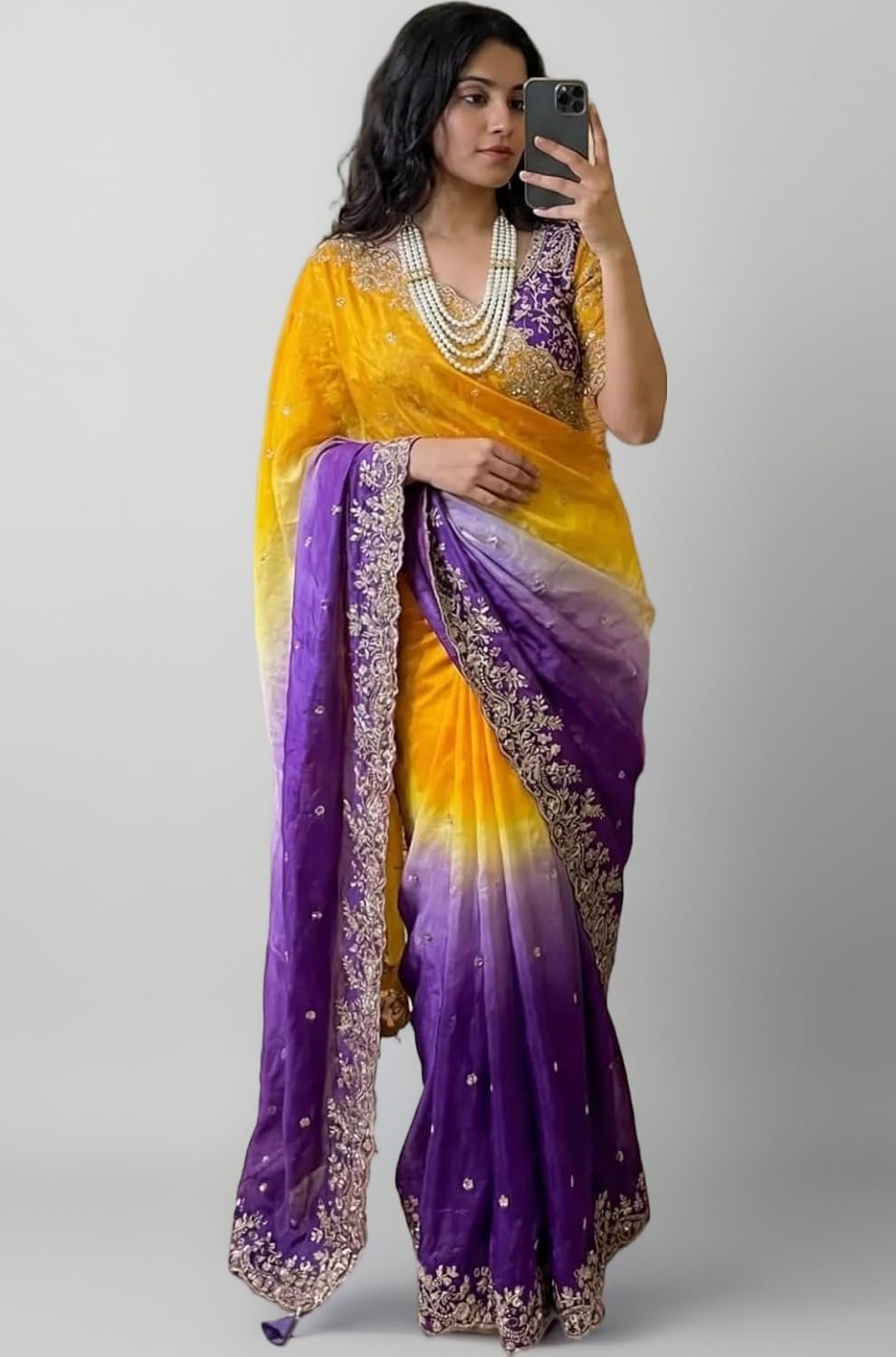 Saree :- Very Soft & Elegant Rich Look Fendi Satin Padding Fabric With Beautiful Embroidery 3 Mm Sequins Work Heavy Border With Buttis In All Over Saree Aarco.
