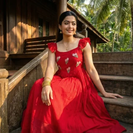 Classy Red Vichitra Silk Gown With Beads And Kardana Handwork