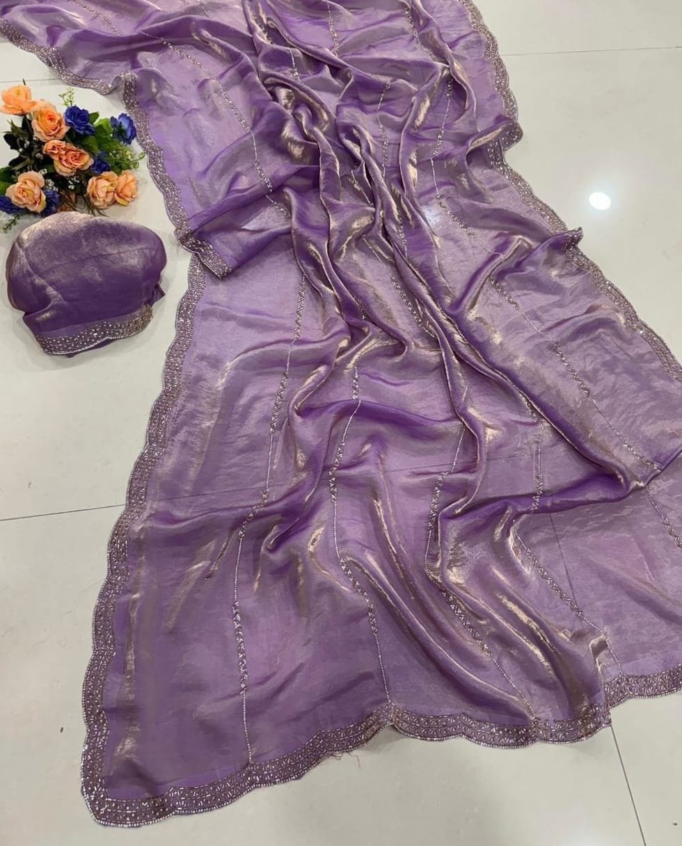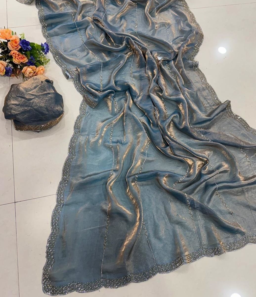 Space Satin Soft Silk Saree With Jarkhan Work & Running Work Blouse.