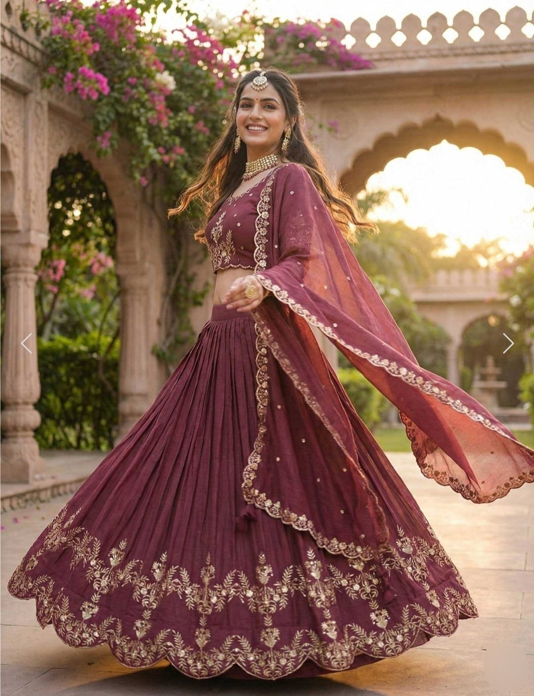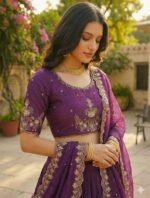 It Features Intricate Golden Embroidery (Likely Zari and Thread Work) It’s a Perfect for the Wedding Season.