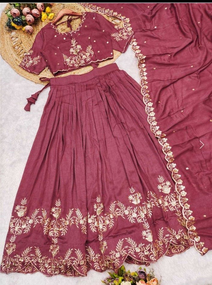 Embroidery Beautiful Motifs of Flowers and Leafs With Cutwork Borders in Dupptta and Lehenga as Well.