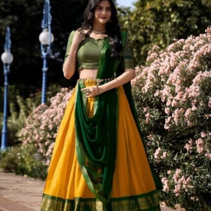 South Indian Cotton Lehenga Choli Set with Heavy Border & Fancy Dupatta Set