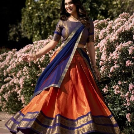 South Style Kanchipuram Silk Half Saree Lehenga Choli
