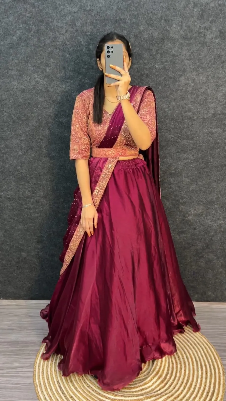 Home Festive Collection Wine Space Silk 4-In-1 Lehenga With Thread & Sequins Work