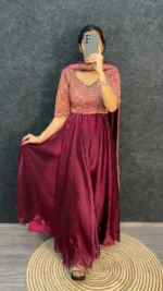 Wine Space Silk 4-In-1 Lehenga With Thread & Sequins Work