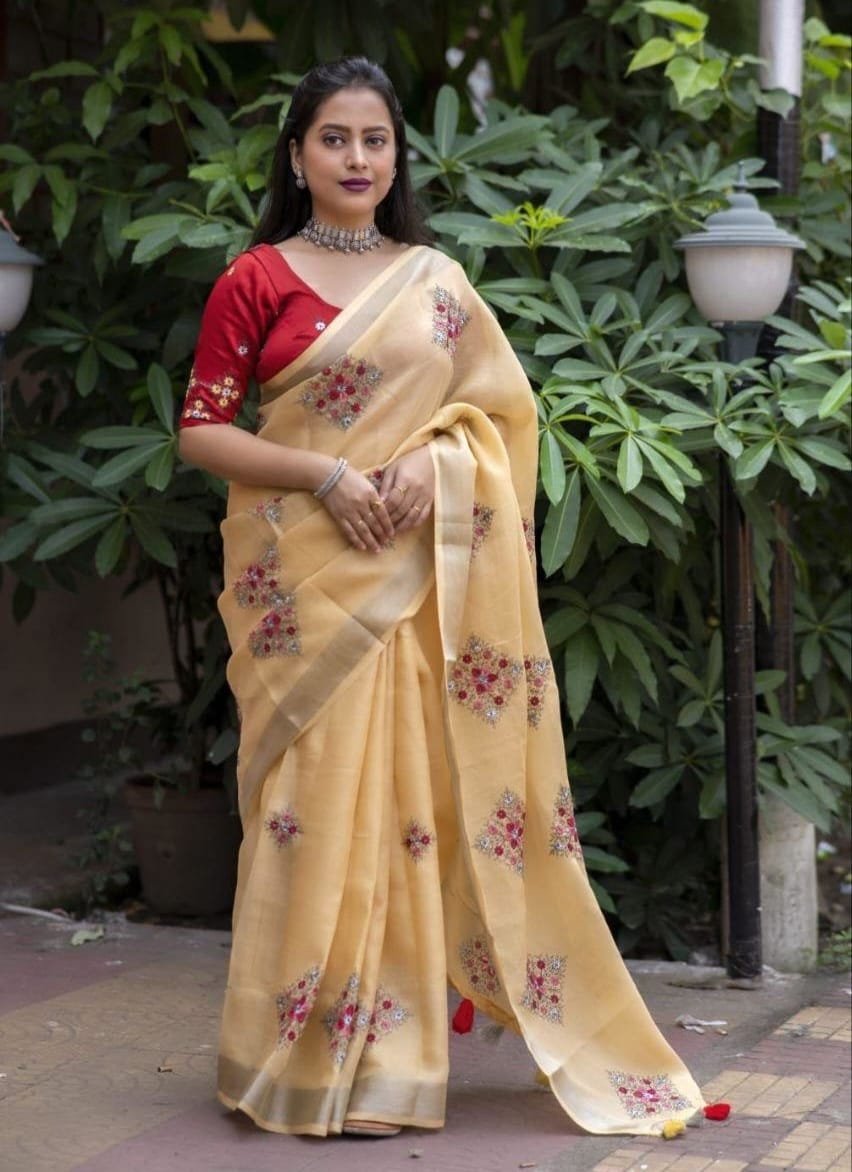 Emboridery Butta On Saree.
